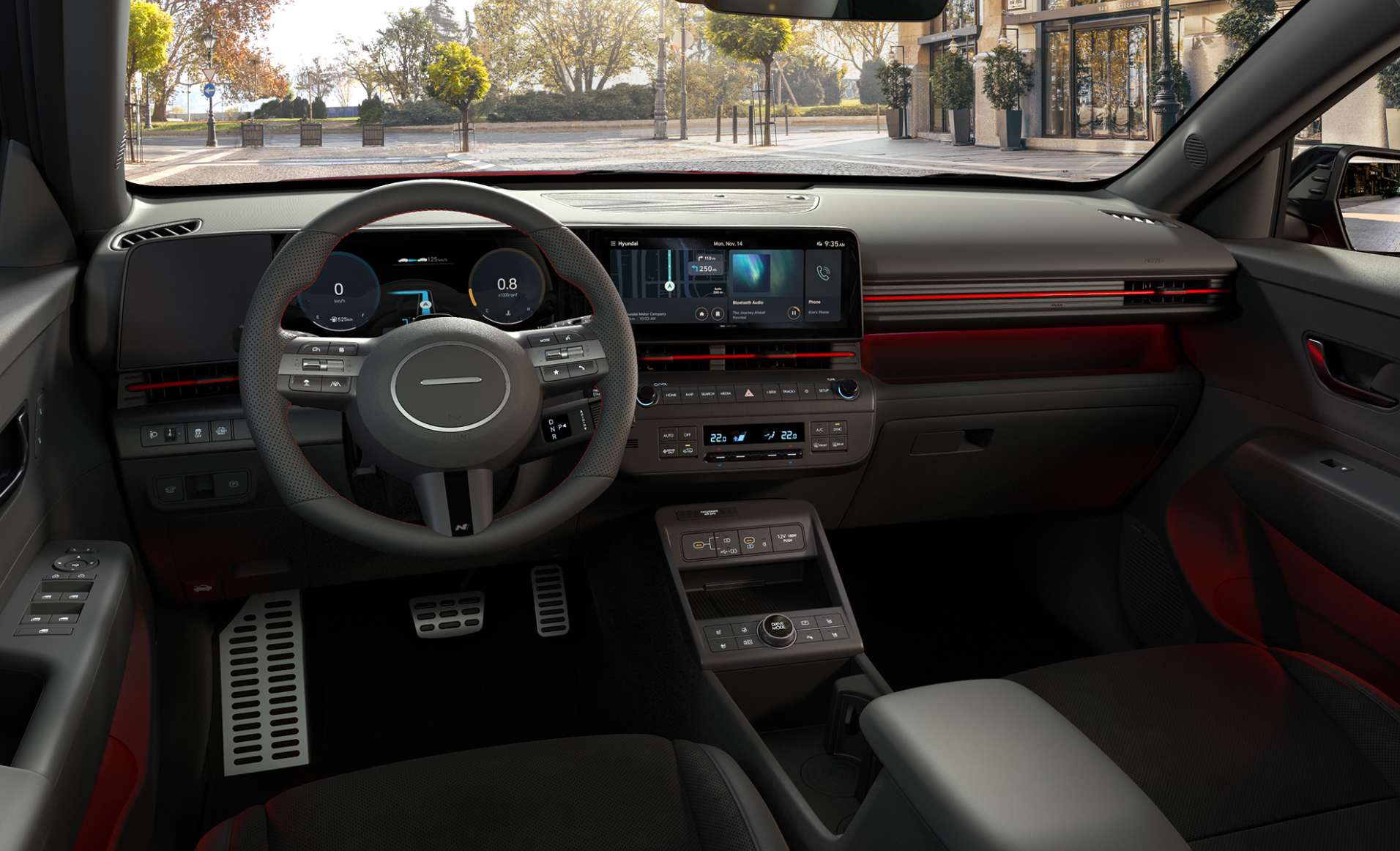 Outside, the new KONA makes a bold statement. Inside, the KONA lets its exceptional level of comfort and wealth of features do the talking. Comfortable sport seats wrap you in comfort and hold you tight around every corner. For the chiller months, the KONA`s heated steering wheel keeps your hands warm for that extra touch of warmth and luxury. Shuffle through your songs and listen to them on the available Bose Premium Audio System. A new column-mounted Shift by Wire allows quick maneuvering and additional space and comfort for all.