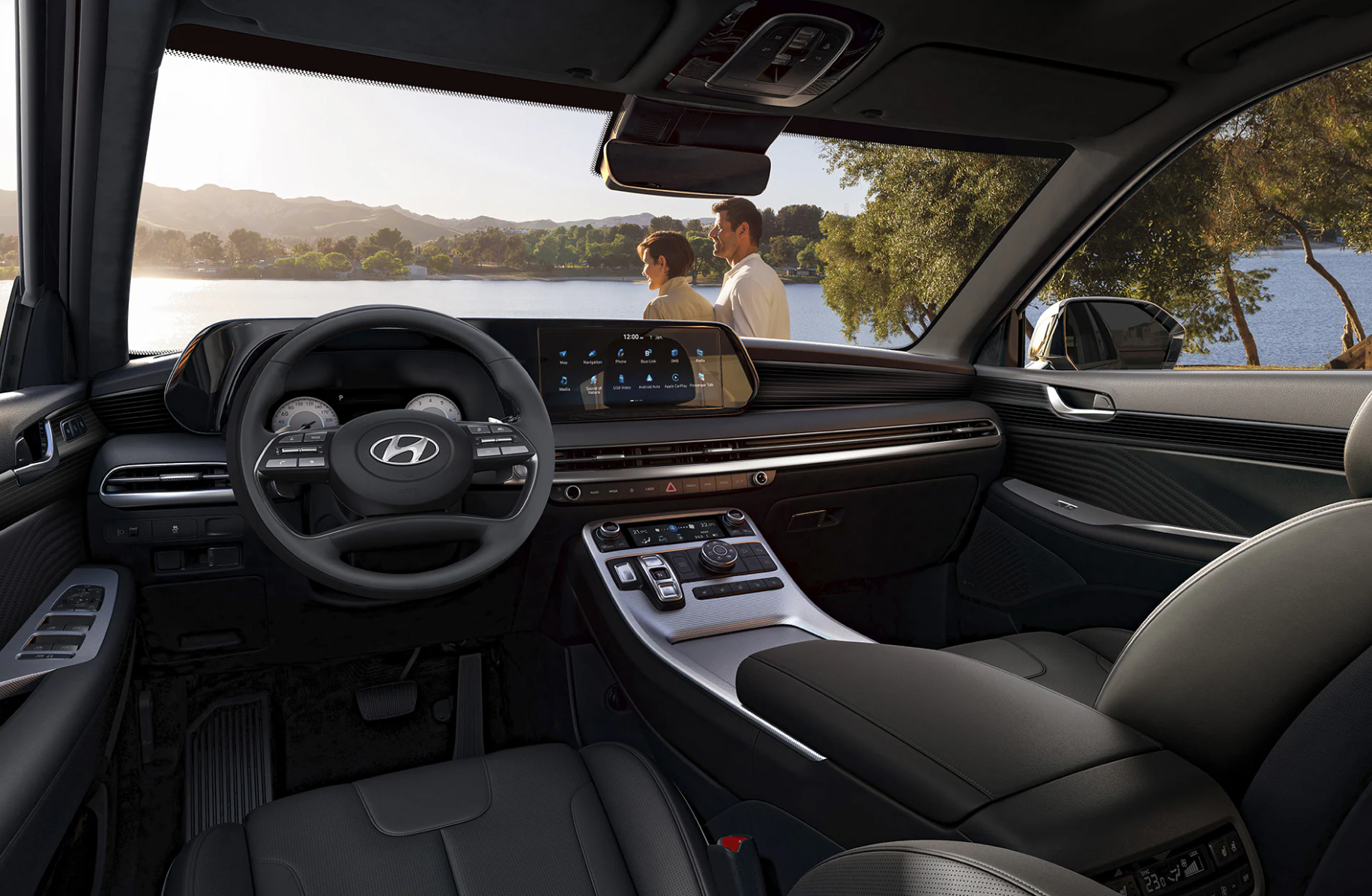 No matter where the day takes you next, the PALISADE’s sleek and commanding presence elevates every drive. With sophisticated touches that intersects with functional family utility, it’s extraordinary in every detail. Standard 20" alloy wheel complement the bold and sophisticated presence of Palisade while the LED headlights project a powerful beam of light and help improve night-time visibility. Brighten up the cabin for everyone with the available dual-panel sunroof.