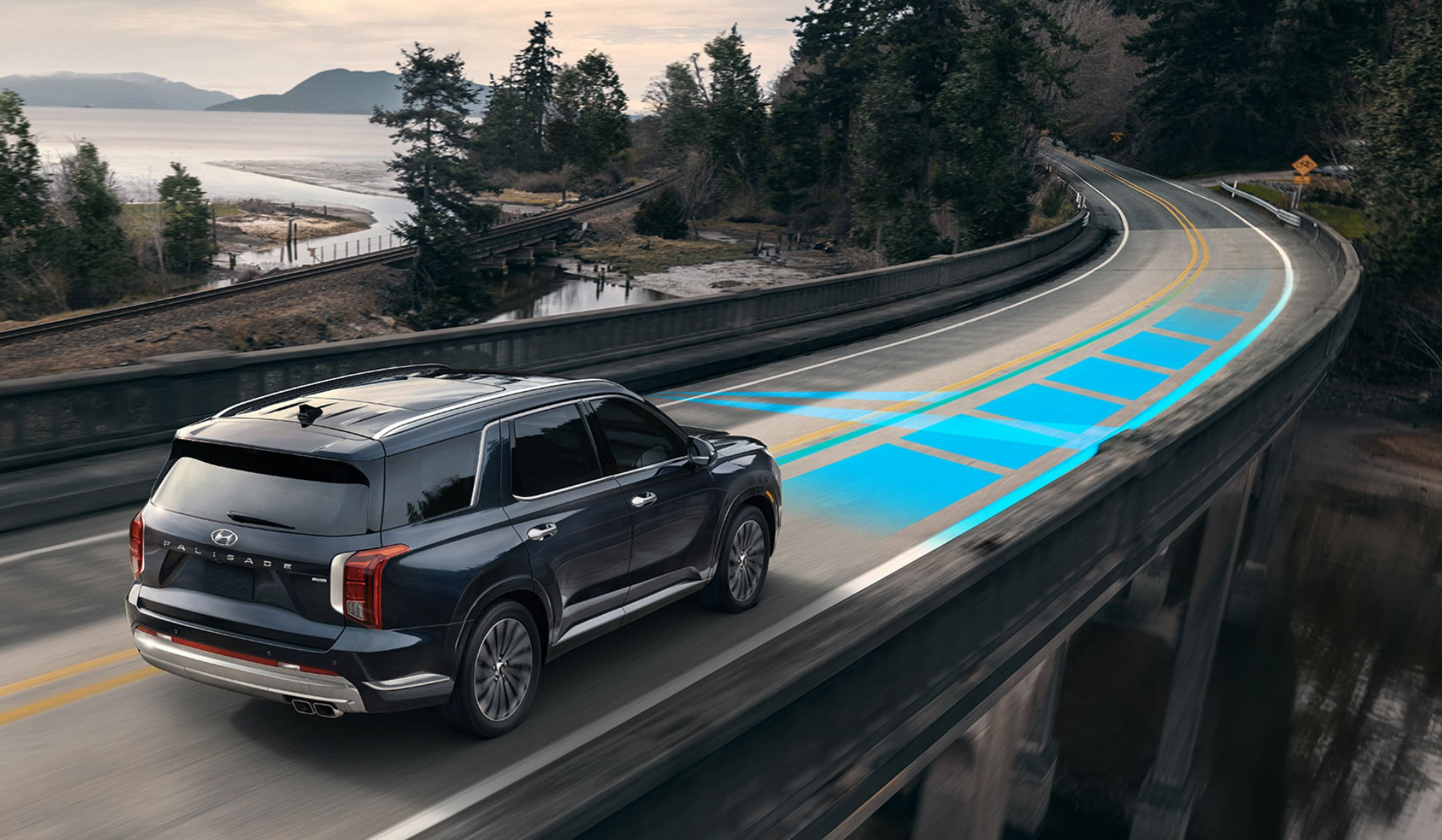 Ignite excitement on every journey with a standard 291 horsepower V6 engine with 262 lb.-ft. of torque giving you plenty of power when you need it. Drivers can benefit from Hyundai’s renowned HTRAC™ All-Wheel Drive system keeping you in control of every condition. The standard cutting-edge 8-speed automatic transmission is smooth, yet highly responsive. Paired with steering wheel-mounted paddle shifters, you can enjoy an enhanced driving experience. The standard auto-levelling rear suspension automatically adjusts the PALISADE to maintain a consistent ride height level when you are carrying a heavy load.